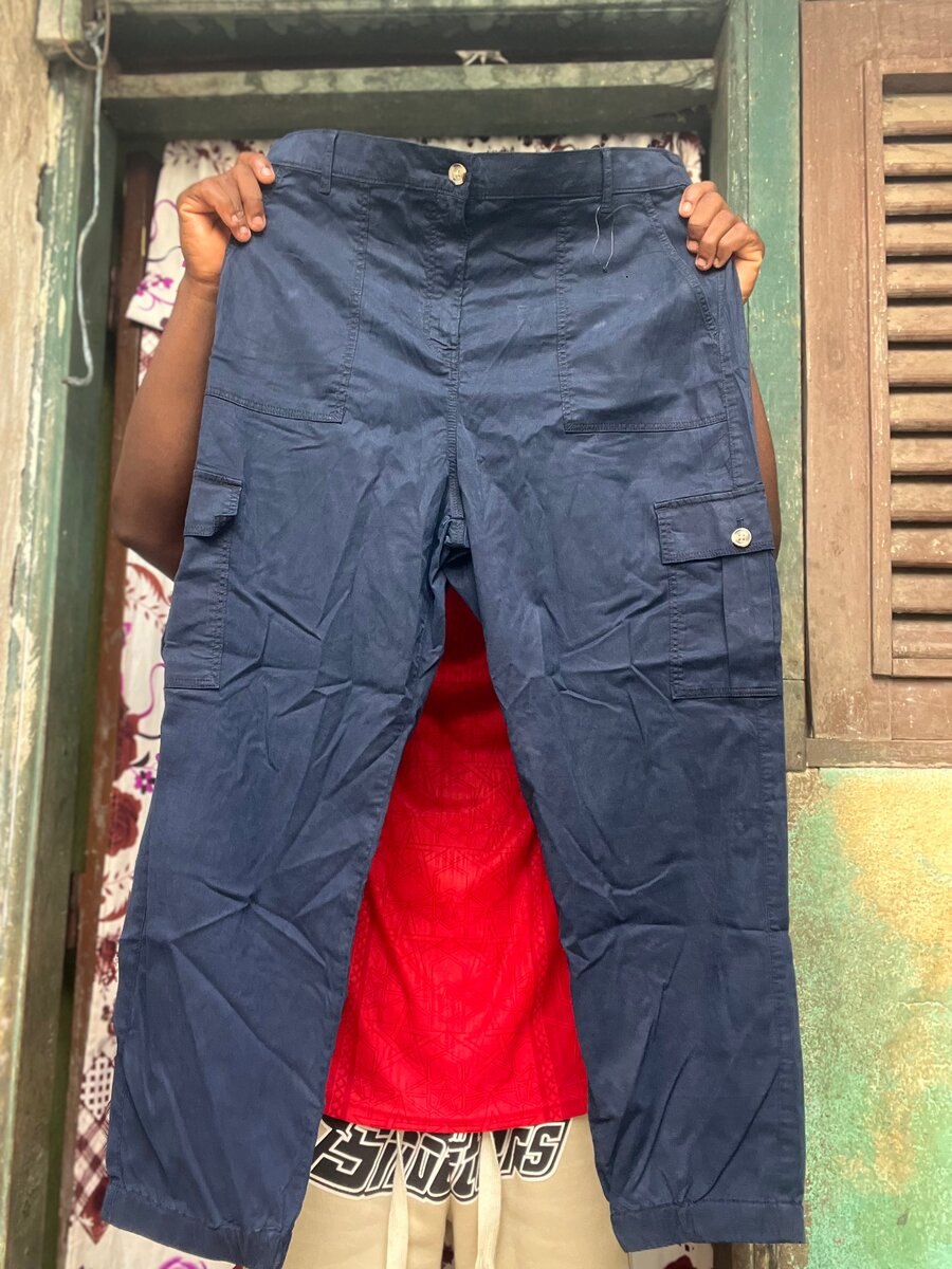 Pantalon cargo bleu pour homme, plusieurs poches pratiques. Confortable et robuste, idéal pour les activités quotidiennes ou en extérieur.