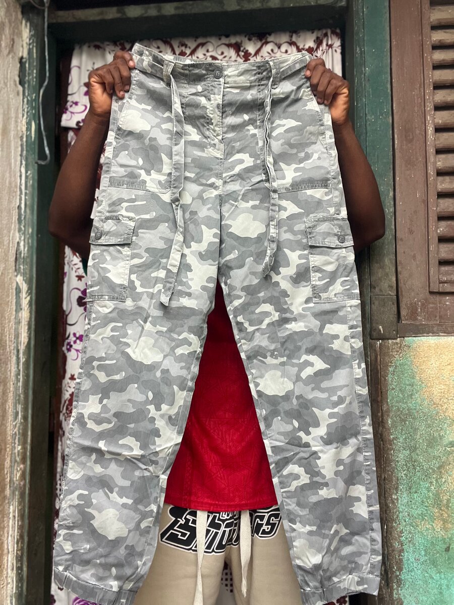 Pantalon cargo camouflage gris pour homme, design confortable et durable. Idéal pour les looks décontractés et streetwear.