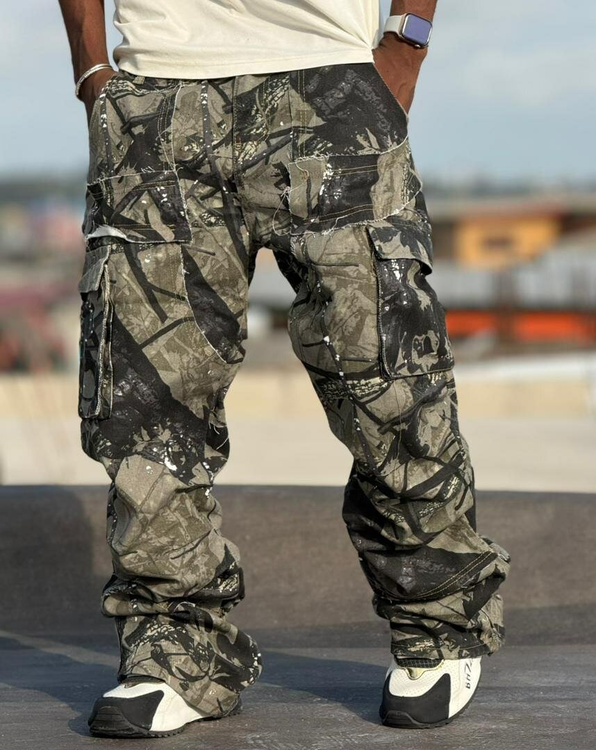 Découvrez le style audacieux avec ce pantalon cargo à motif camouflage. Parfait pour un look urbain ou aventureux, il offre confort et style à chaque pas. Idéal pour les sorties en plein air ou les escapades urbaines.