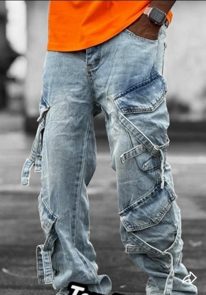 Découvrez ce pantalon cargo en jean moderne et stylé, idéal pour un look urbain. Conçu avec des poches multiples pour un maximum de confort et de praticité. Parfait pour les sorties décontractées et les aventures du quotidien. Faites une déclaration de style avec ce vêtement unique et fonctionnel.