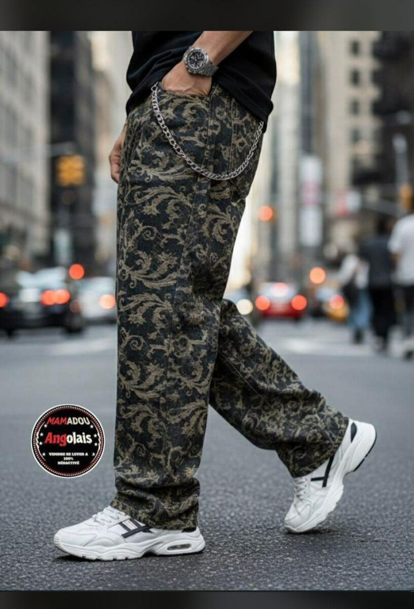 Pantalon cargo pour homme avec une impression tendance. Confortable et élégant, parfait pour un look urbain. Disponible en plusieurs tailles.