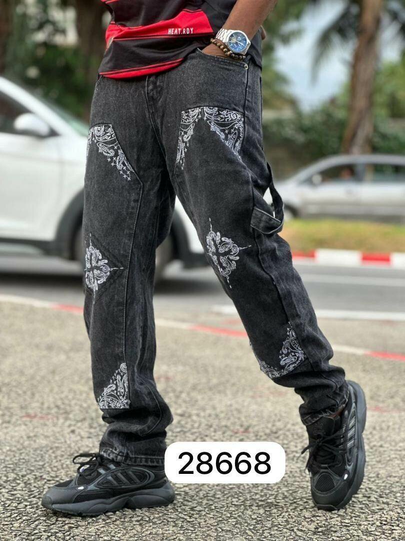 Optez pour ce pantalon cargo noir tendance avec motifs distinctifs. Confortable et stylé, il est parfait pour un look urbain et décontracté. Idéal pour les sorties en ville ou les occasions décontractées. Associez-le avec des sneakers pour un style parfait.