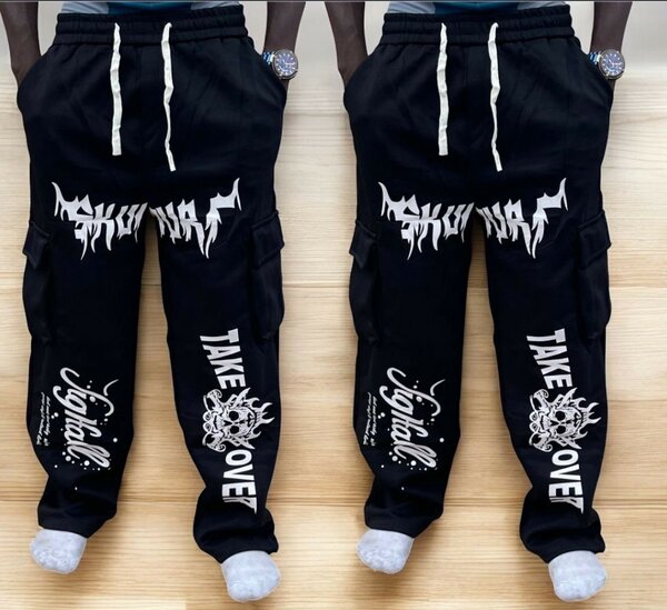 Optez pour ce pantalon cargo noir avec motifs modernes pour un look urbain et décontracté. Confortable et stylé, idéal pour toutes occasions.