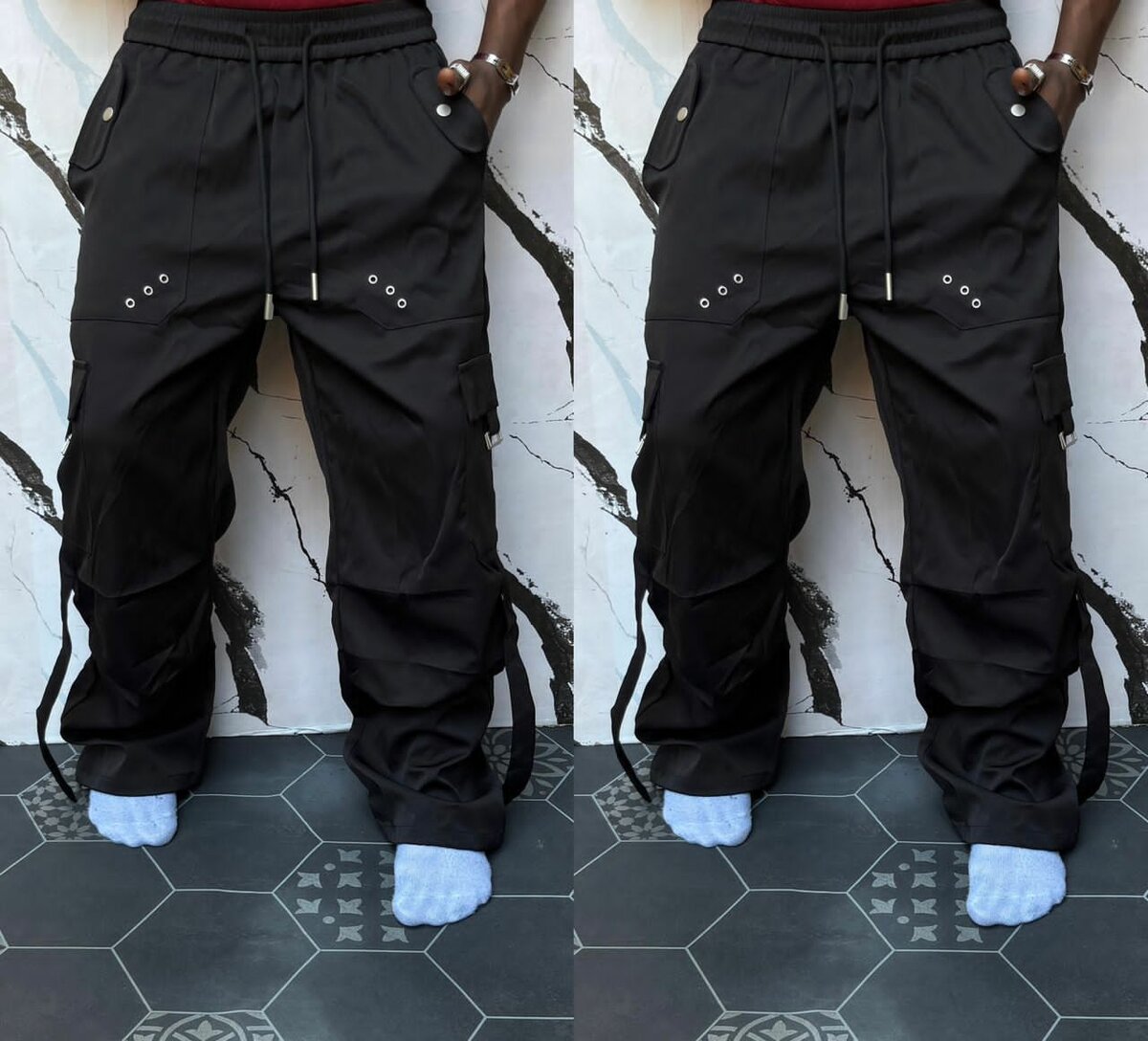 Découvrez ce pantalon cargo noir, idéal pour un look urbain et confortable. Fabriqué en matériau de qualité, il offre une coupe ample et des poches pratiques pour un style décontracté et fonctionnel. Parfait pour les sorties en ville ou les activités décontractées.