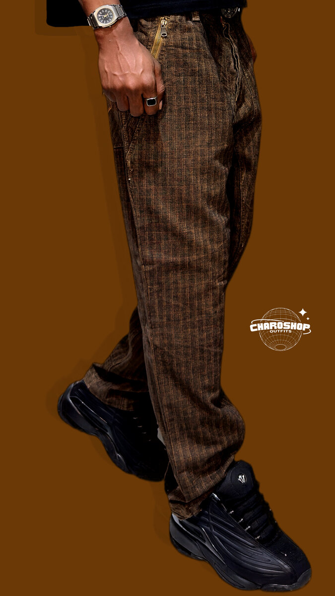 Découvrez notre pantalon cargo rayé marron, idéal pour un look urbain et décontracté. Conçu avec des poches spacieuses et des détails élégants, il offre confort et style. Parfait pour les sorties en ville ou les aventures en plein air. Ce pantalon s'adapte à toutes les occasions, tout en restant pratique et tendance. Ne manquez pas cette pièce polyvalente pour enrichir votre garde-robe.