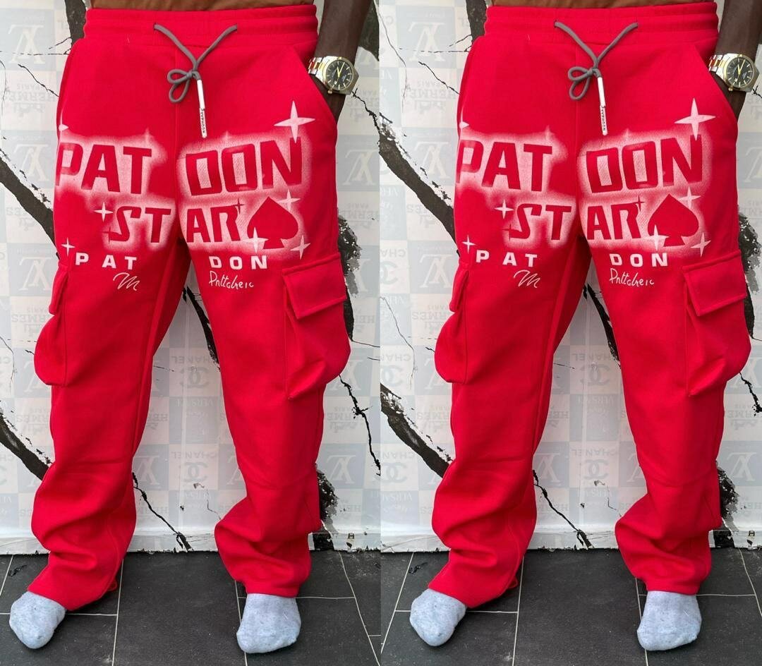 Pantalon cargo rouge pour homme, confortable et stylé. Design ample avec poches latérales.