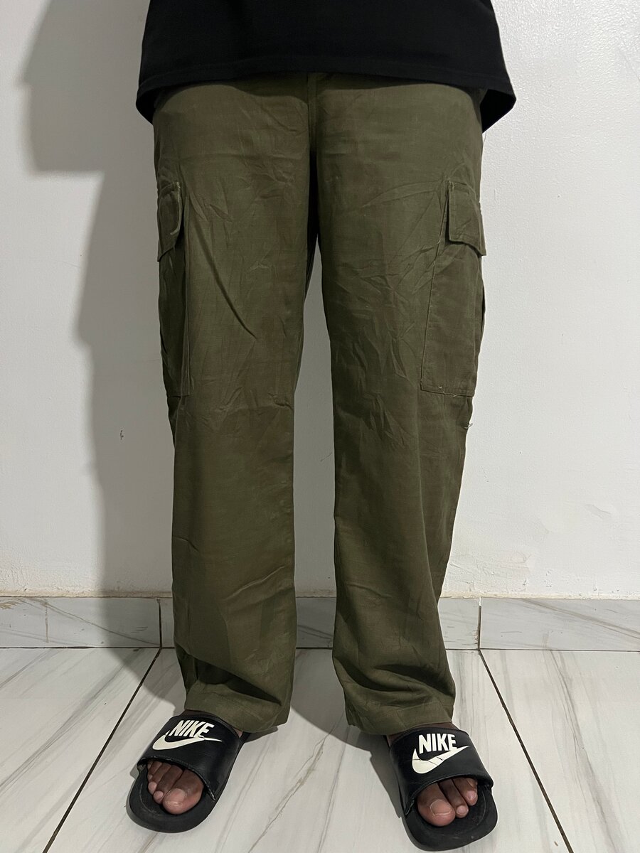 Pantalon cargo vert pour homme, idéal pour un style décontracté et fonctionnel. Fabriqué avec des matériaux durables, il comporte plusieurs poches pratiques pour vos essentiels quotidiens. Parfait pour les activités extérieures ou un look urbain.