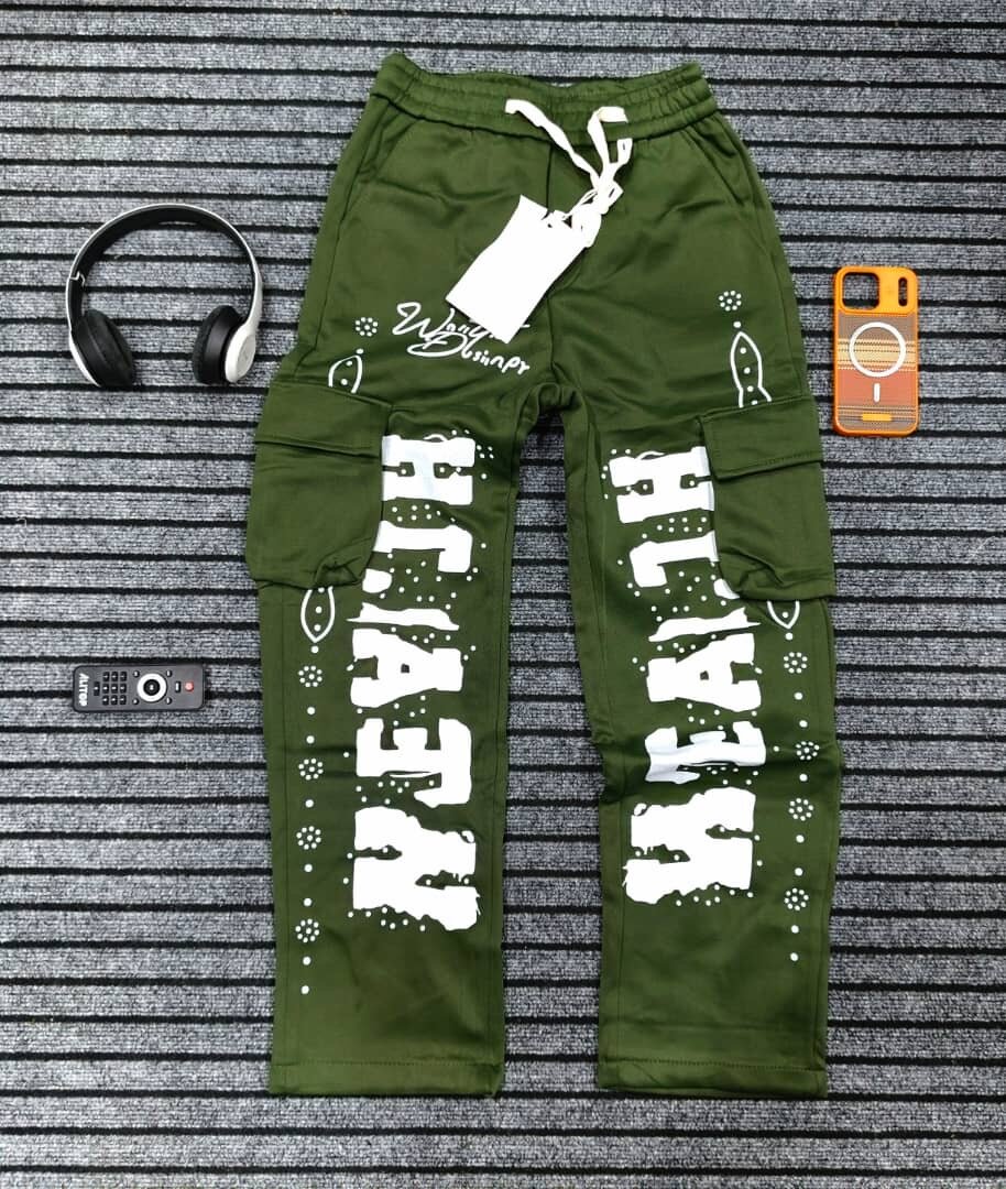 Ce pantalon cargo vert est parfait pour un look décontracté et stylé. Conçu avec des poches pratiques et un imprimé unique, il convient parfaitement aux sorties urbaines. Idéal pour les amateurs de mode souhaitant allier confort et esthétique distinctive.