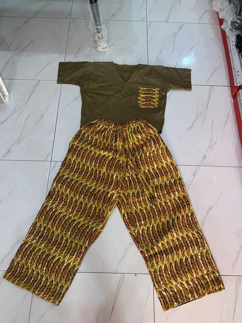 Adoptez un style unique avec cet ensemble africain élégant. Parfait pour les occasions spéciales ou le quotidien, il combine confort et design . Le haut avec poche assortie et le pantalon coloré créent ensemble une harmonie visuelle attrayante. Idéal pour vous démarquer avec une touche de modernité.