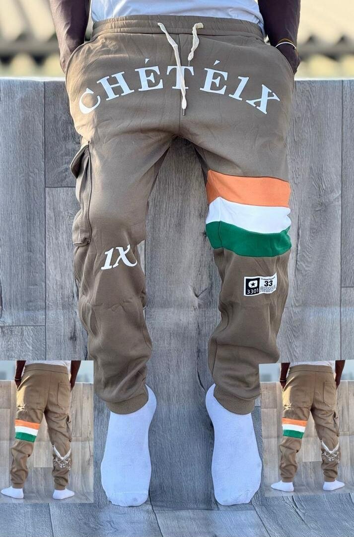 Ce pantalon de jogging beige Chétéix est idéal pour le confort et le style quotidien. Conçu avec un drapeau coloré et des caractères distinctifs, il apporte une touche moderne et unique à votre garde-robe. Fabriqué à partir de matériaux de qualité, il est parfait pour le sport ou les loisirs. Ses poches fonctionnelles en font un choix pratique pour toutes les activités. Adoptez un look décontracté avec ce pantalon polyvalent.