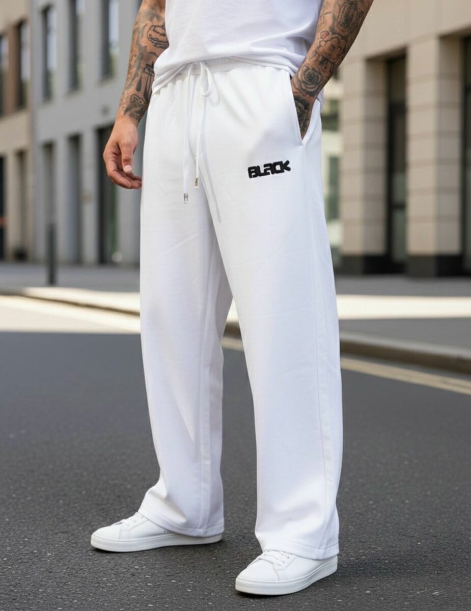 Pantalon de jogging confortable et élégant pour homme, couleur blanc. Idéal pour les activités décontractées ou le quotidien.