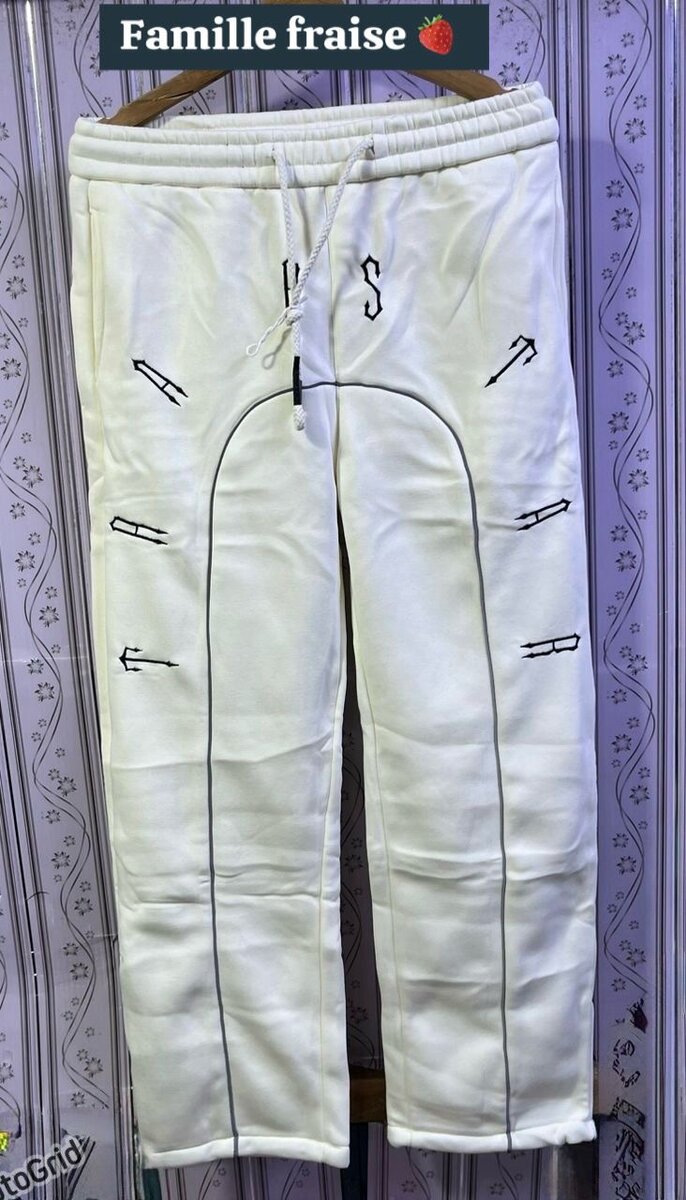 Pantalon de jogging pour homme en blanc avec cordon et détails design. Confortable et élégant, idéal pour des activités décontractées ou sportives.
