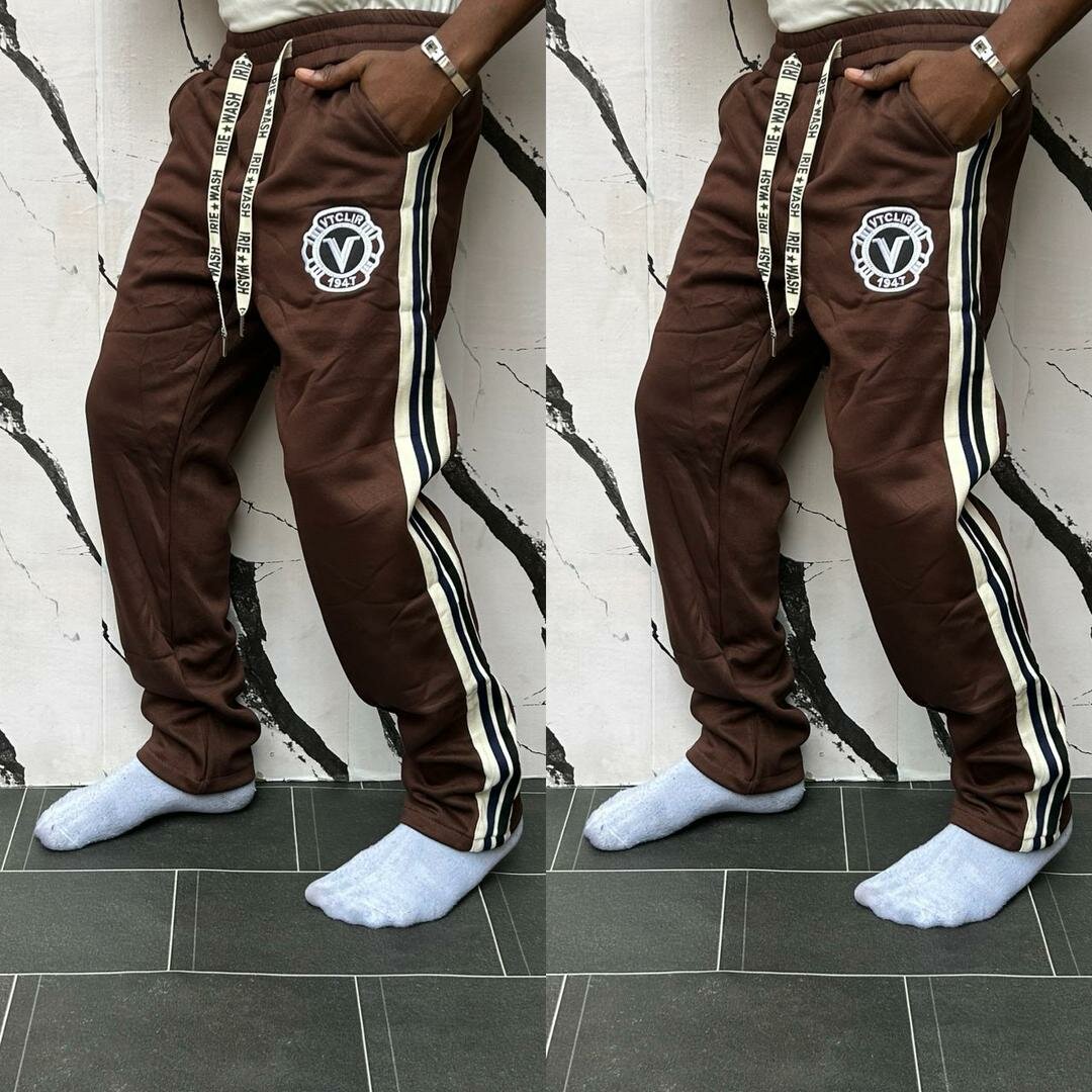 Pantalon de jogging marron confortable avec bandes latérales pour un style sportif. Idéal pour la maison ou l'exercice.