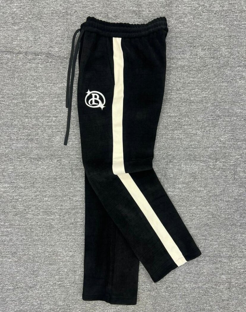 Pantalon de jogging noir avec bande latérale blanche et logo. Conçu pour le confort et le style, idéal pour les activités sportives ou décontractées. Tissu doux et résistant.