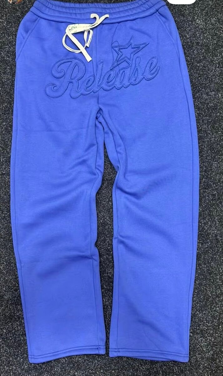 Pantalon de survêtement bleu confortable avec cordon. Idéal pour le sport ou les loisirs. Conception décontractée et résistante.