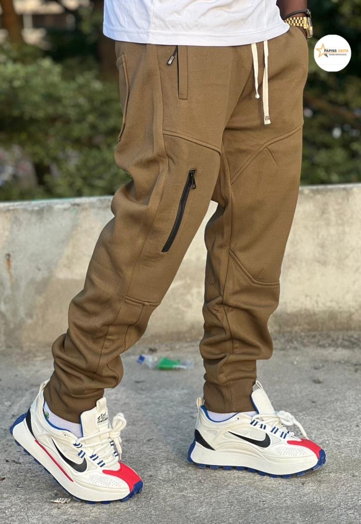 Découvrez ce pantalon de survêtement marron, parfait pour un look décontracté et confortable. Idéal pour les sorties ou le sport, il offre un style moderne avec des poches zippées pratiques. Fabriqué en matériau de haute qualité pour un confort optimal.