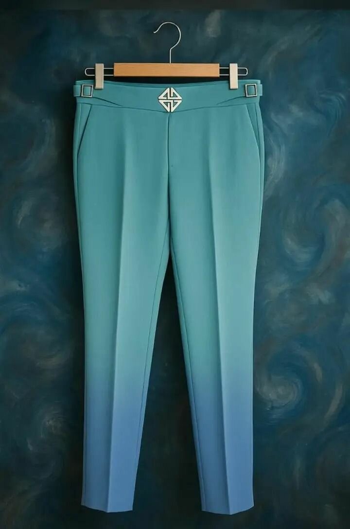 Découvrez ce pantalon élégant offrant un magnifique dégradé de bleu,