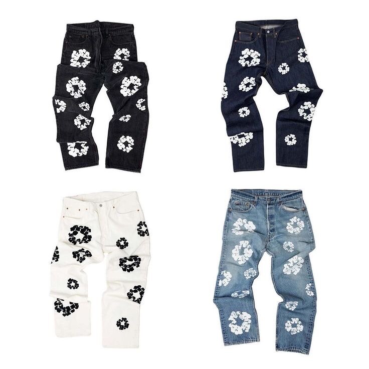 Jeans brodés fleuris pour hommes