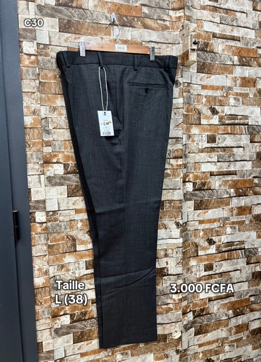 Découvrez ce pantalon noir pour homme, parfait pour un look élégant et moderne. Taille L (38), il est confortable et élégant pour toutes les occasions. Fait avec des matériaux de qualité. Marque : [Nom de la marque].