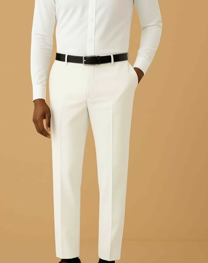 Optez pour ce pantalon habillé blanc élégant et moderne pour vos événements formels. Confectionné avec des matériaux de haute qualité, il offre une coupe ajustée parfaite. Idéal pour mariages, soirées ou réunions professionnelles.