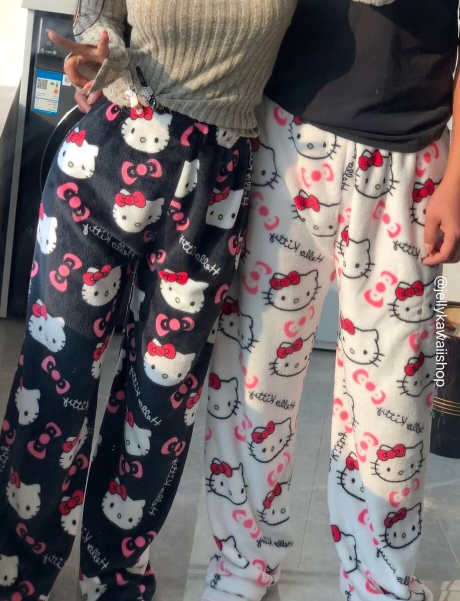 Pantalon Hello Kitty confortable et tendance. Doux et confortable, idéal pour dormir ou se détendre à la maison. Différents coloris disponibles.