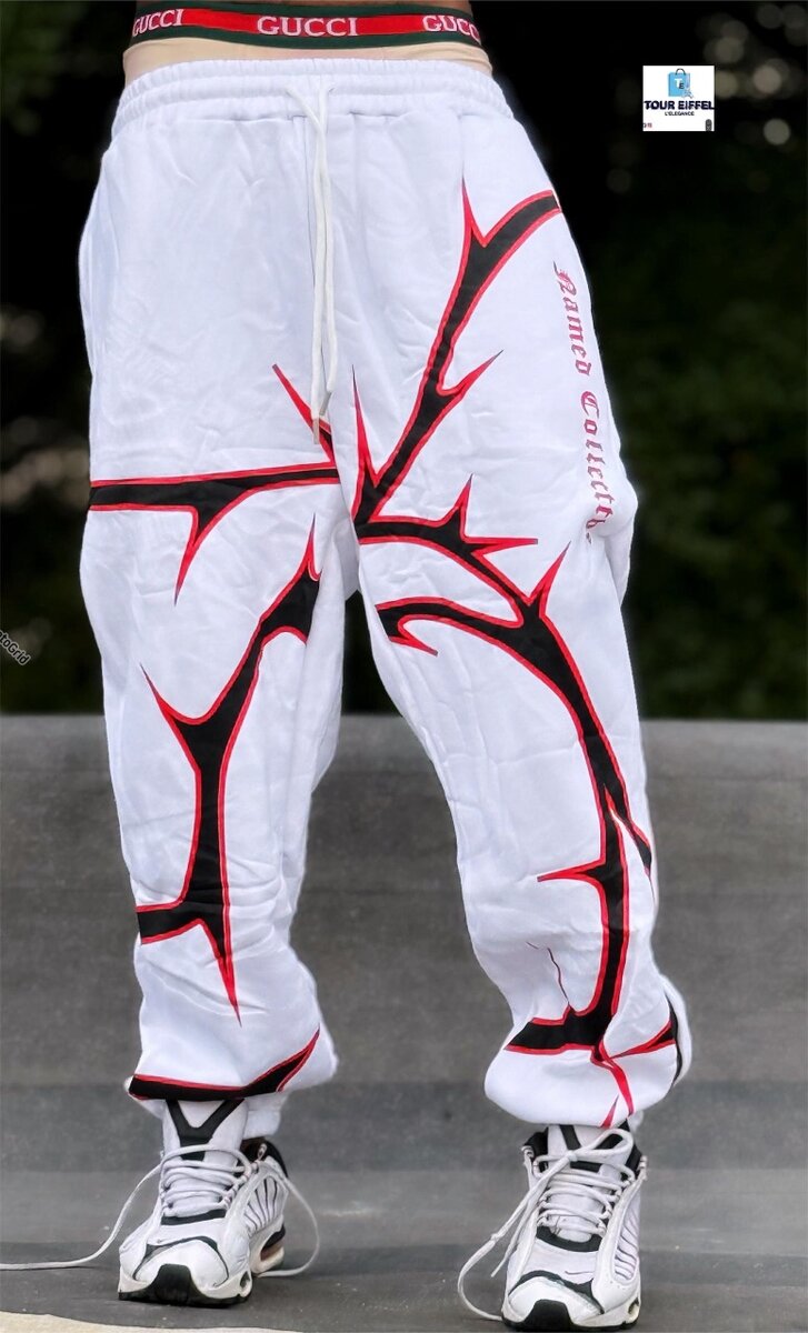 Découvrez ce pantalon de jogging stylé avec un design graphique audacieux. Idéal pour les hommes cherchant à allier confort et tendance. Parfait pour un look sportif et moderne.