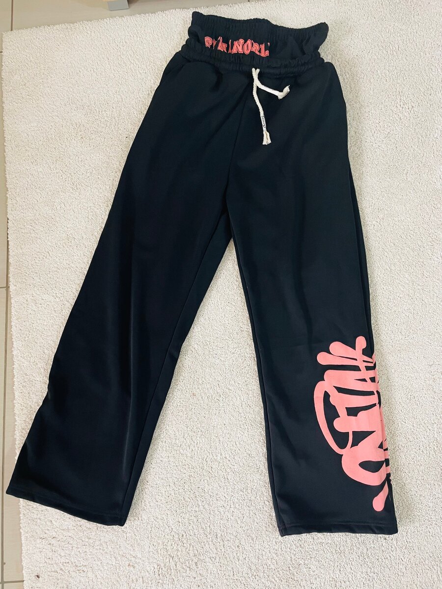 Découvrez ce pantalon de jogging noir, idéal pour un style décontracté et tendance. Avec son design à cordon de serrage et impression rose audacieuse, il est parfait pour le sport et les sorties détente. Un incontournable pour le confort et la mode.