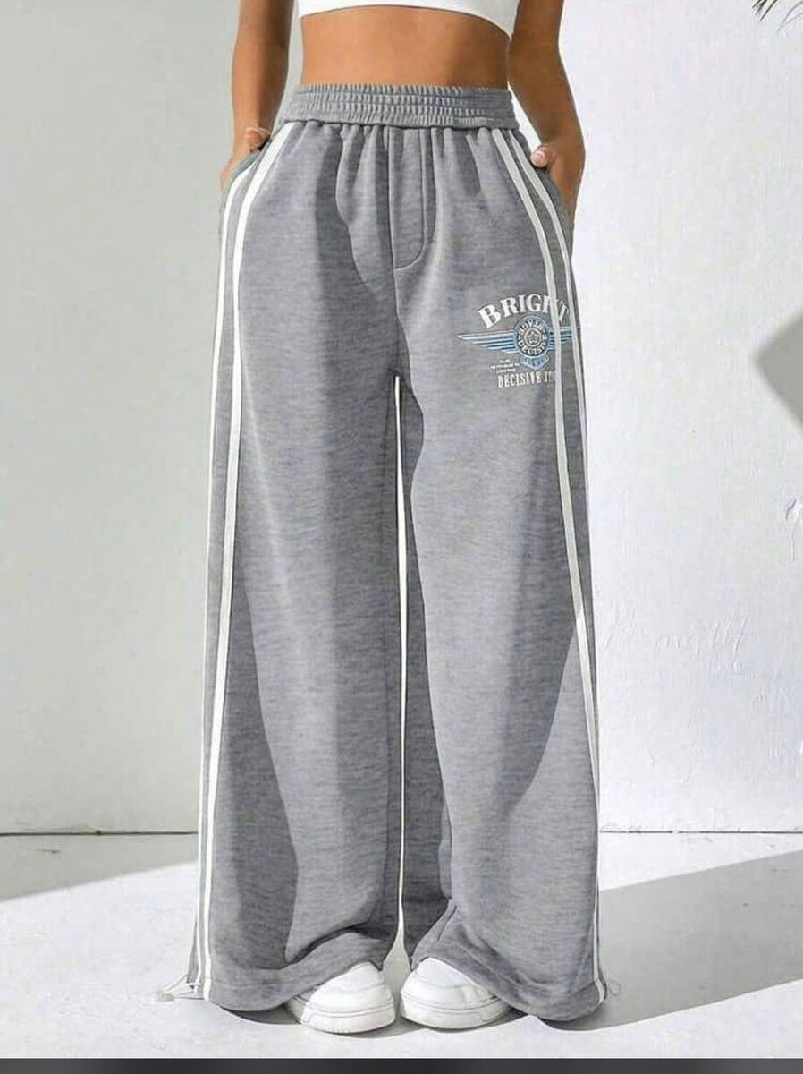 Pantalon large gris pour femme, confortable et élégant. Idéal pour la vie quotidienne ou les activités sportives.