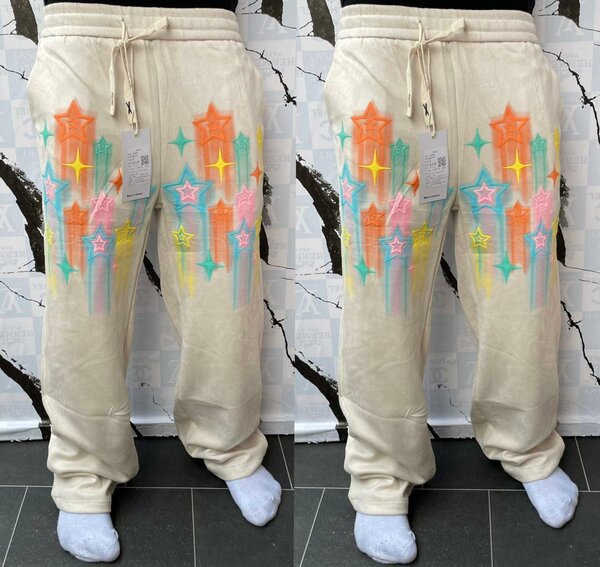 Un pantalon streetwear avec un design artistique distinctif, idéal pour ceux qui cherchent à se démarquer. Confortable et stylé, il s'intègre parfaitement dans une garde-robe urbaine.