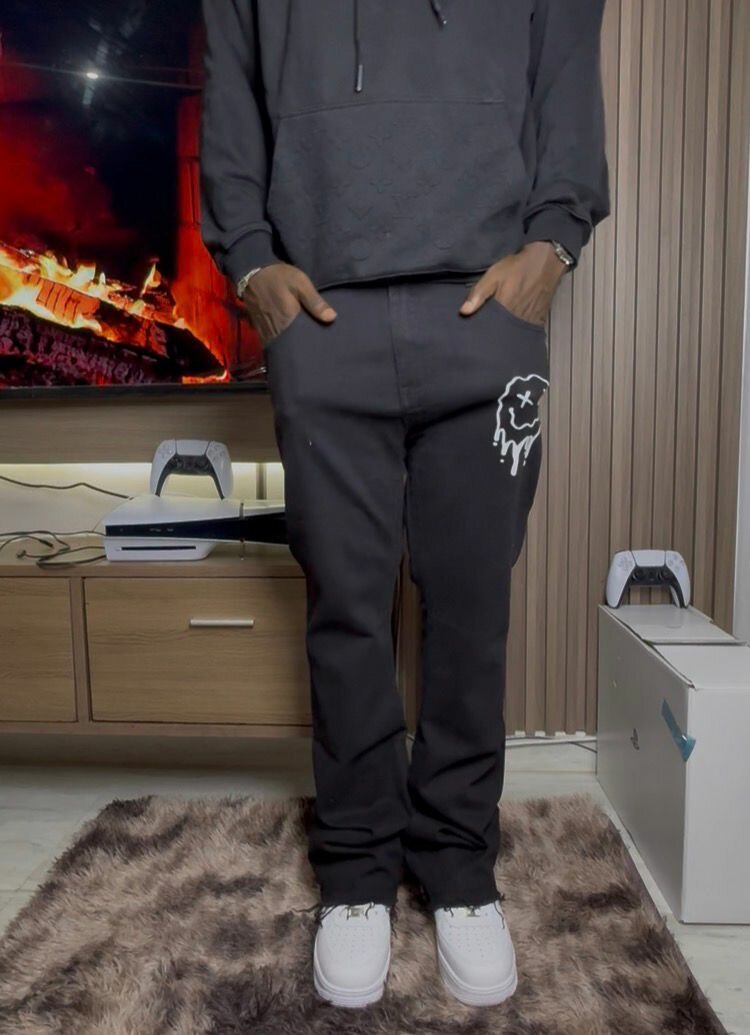 Optez pour un style urbain avec ce pantalon streetwear à motifs graphiques tendance. Idéal pour une tenue décontractée et moderne. Confortable et stylé, parfait pour vos sorties en ville ou soirées entre amis. Complétez votre garde-robe avec cette pièce unique!