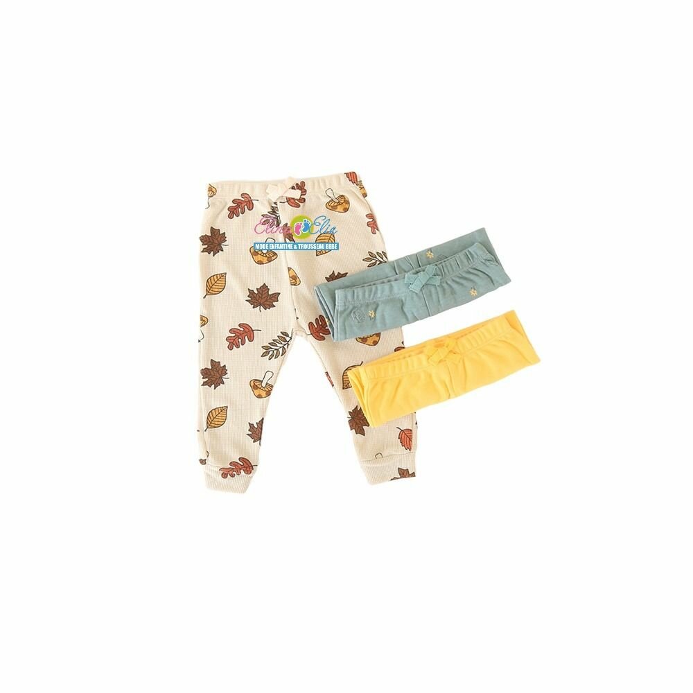 Craquez pour ces adorables pantalons bébé à motif feuilles, parfaits pour l'automne. Confortables et doux, ils sont accompagnés de deux bandeaux assortis pour une tenue complète et stylée. Idéal pour garder votre bébé à la mode tout en restant au chaud.