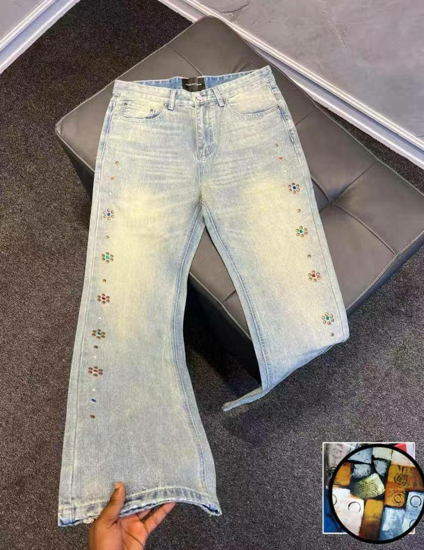Découvrez ces pantalons en denim uniques avec des designs artistiques. Parfaits pour les sorties décontractées, ils apportent une touche originale à votre garde-robe. Confortables et tendances, idéaux pour exprimer votre style distinctif.