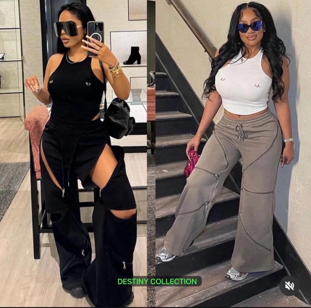 Découvrez ces pantalons tendance avec découpes audacieuses, parfaits pour un look moderne et chic. Confortables et stylés, idéaux pour sortir ou un événement décontracté. Portez-les avec un haut simple pour faire ressortir leur originalité. Parfaits pour les fashionistas à la recherche d'un style unique.