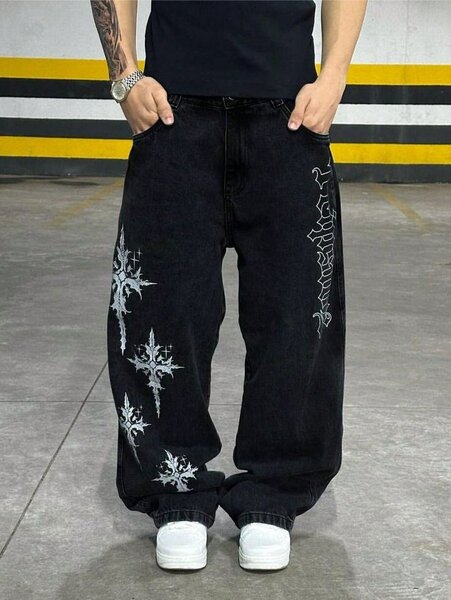 Jean large noir homme avec motifs