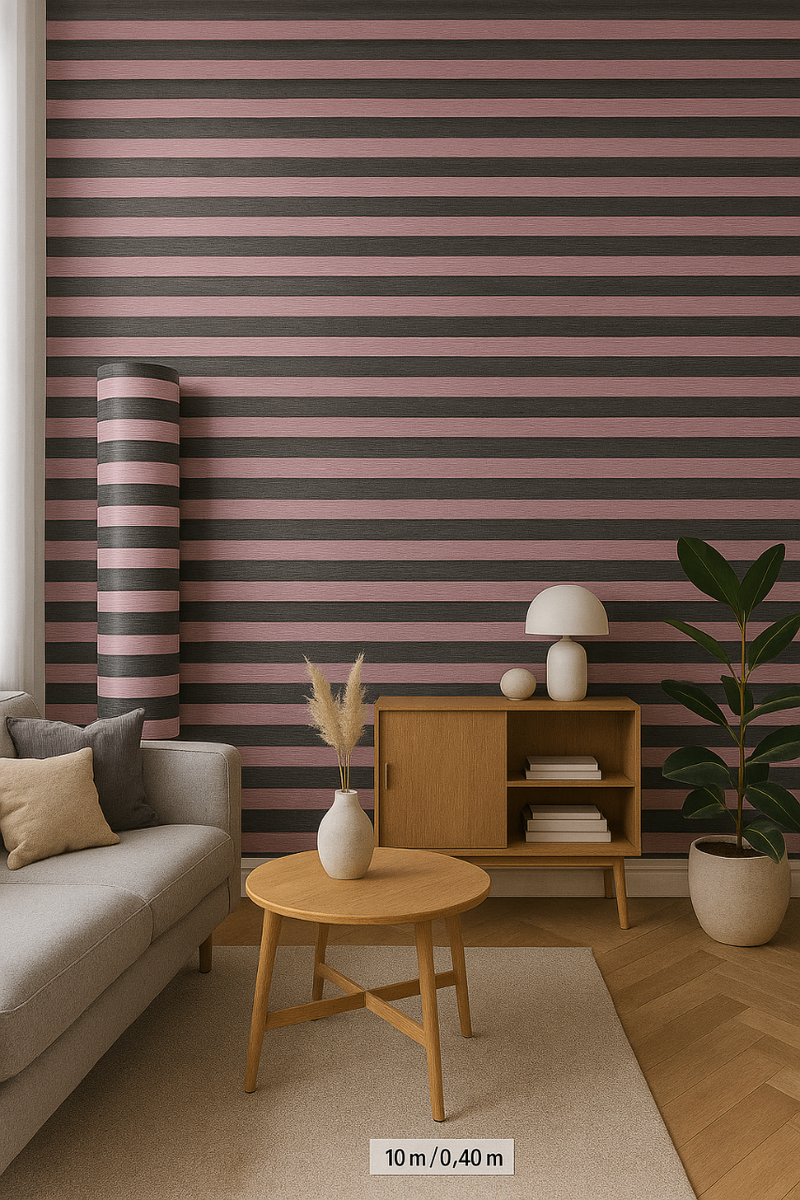 Ajoutez une touche moderne et élégante à votre espace avec ce papier peint rayé rose et noir. Idéal pour le salon, la chambre ou le bureau, il apporte profondeur et style à vos murs. Facile à installer et durable, ce papier peint est parfait pour transformer n'importe quelle pièce de votre maison.