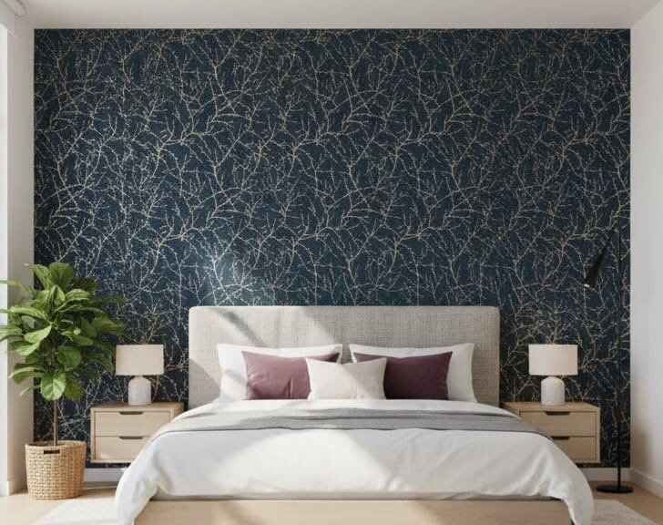 Transformez votre espace avec ce papier peint élégant à motif branchage. Idéal pour une chambre ou un salon, il ajoute une touche de sophistication naturelle. Sa couleur foncée subtile s'agence parfaitement avec des meubles clairs. Facile à poser, c'est le choix parfait pour un intérieur moderne et séduisant.