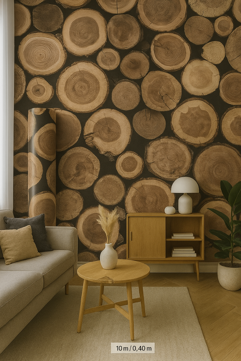 Transformez votre espace avec ce papier peint motif rondins de bois. Idéal pour apporter une touche naturelle et chaleureuse à votre intérieur. Parfait pour le salon ou la chambre.