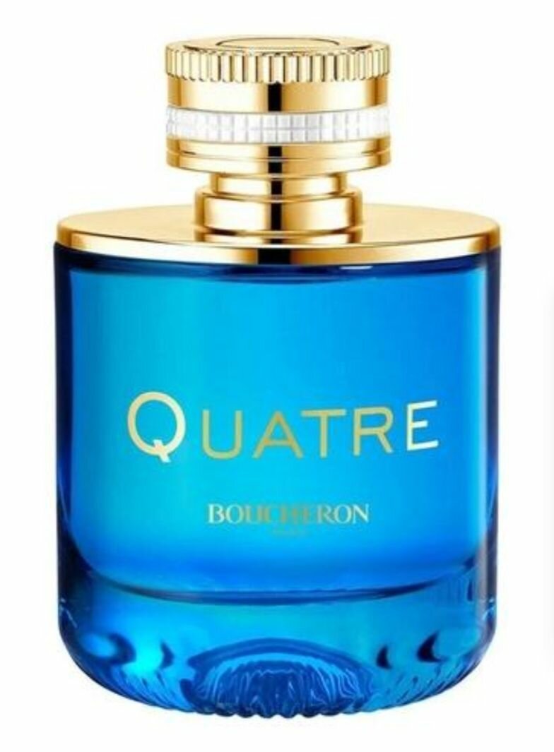 Découvrez le parfum Boucheron Quatre est une fragrance séduisante et élégante. Sa bouteille bleue et or incarne le luxe et l'élégance. Parfait pour les occasions spéciales ou le quotidien, ce parfum vous distingue avec ses notes raffinées. (Unisexe)