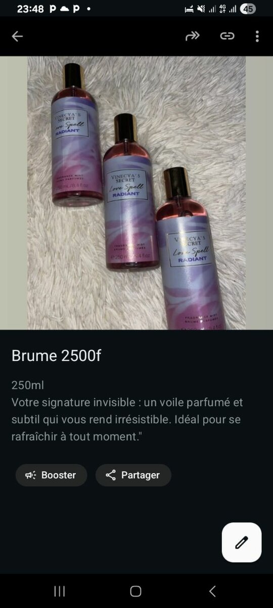 Découvrez Brume 2500f, un parfum subtil et invisible. Parfait pour se rafraîchir à tout moment. Contenance : 250ml.