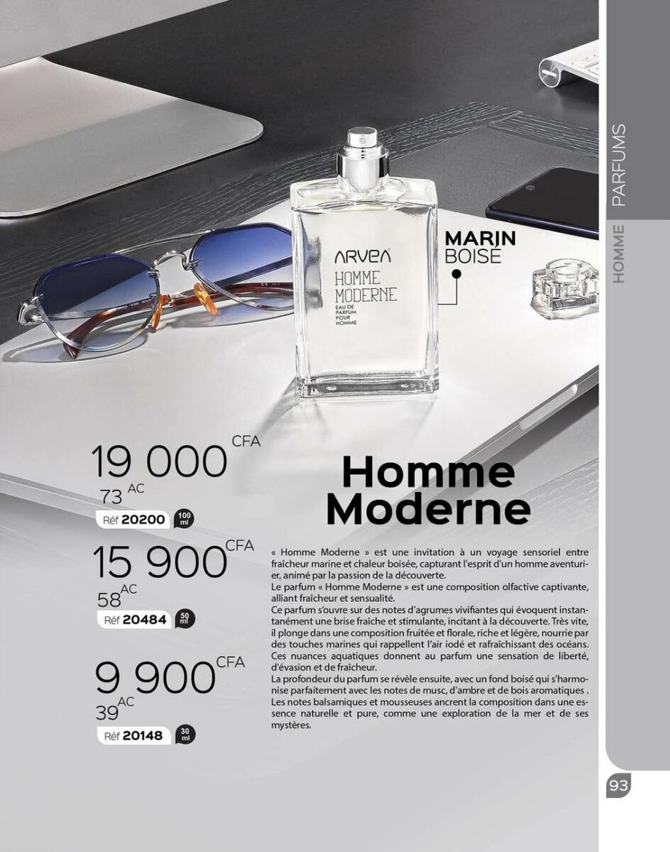 Découvrez le parfum 'Homme Moderne' d'Arvea, une symphonie envoûtante de notes marines et boisées, parfaite pour l'homme contemporain. Exprimez votre élégance avec ce parfum raffiné, idéal pour chaque occasion.