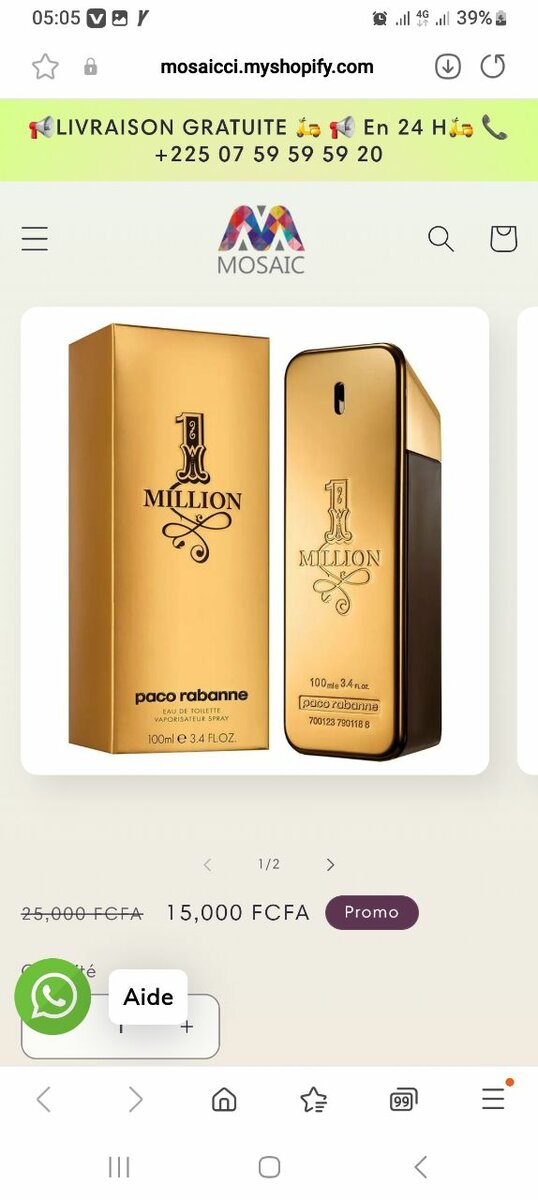 Découvrez le luxueux parfum One Million pour homme. Avec des notes audacieuses et sophistiquées, ce parfum est l'ultime expression de la confiance et du style. Parfait pour les occasions spéciales ou pour une touche de charme quotidienne, faites-en votre signature olfactive.