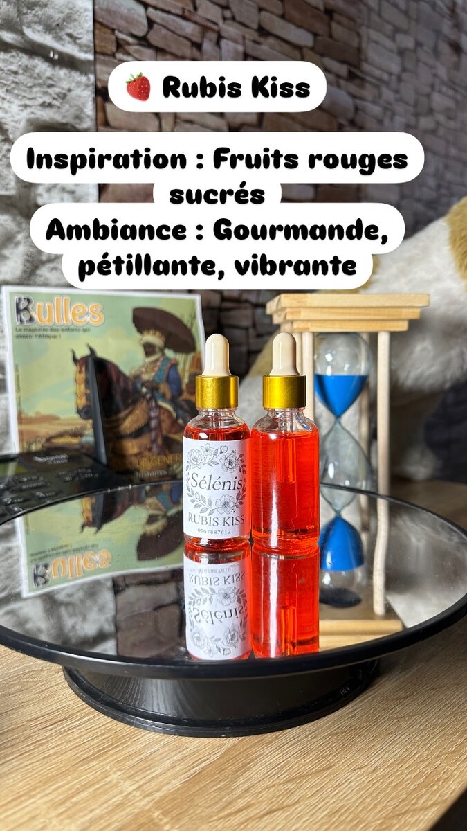 Découvrez Rubis Kiss, un parfum vibrant et pétillant aux notes sucrées de fruits rouges. Parfait pour une touche gourmande et audacieuse au quotidien. Succombez à son ambiance éclatante !