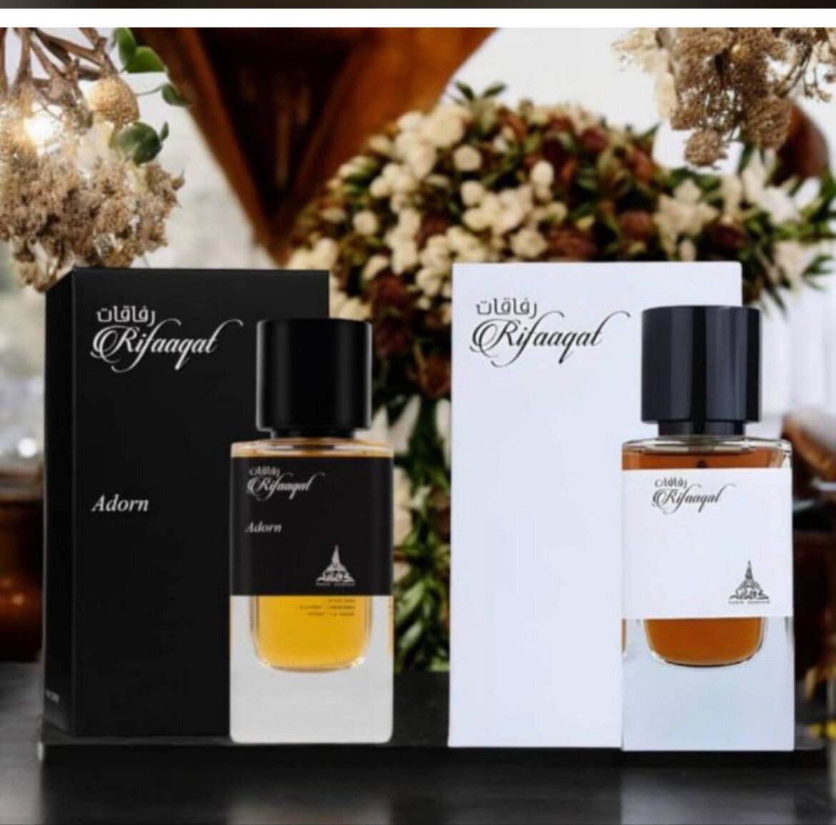 Découvrez Rafaqat Adorn, un parfum envoûtant pour hommes et femmes. Sa fragrance unique révèle des notes luxueuses qui éveillent les sens. Parfait pour toutes les occasions, ce parfum vous enveloppe d'une élégance intemporelle. Faites une déclaration subtile mais marquée avec Rafaqat Adorn.