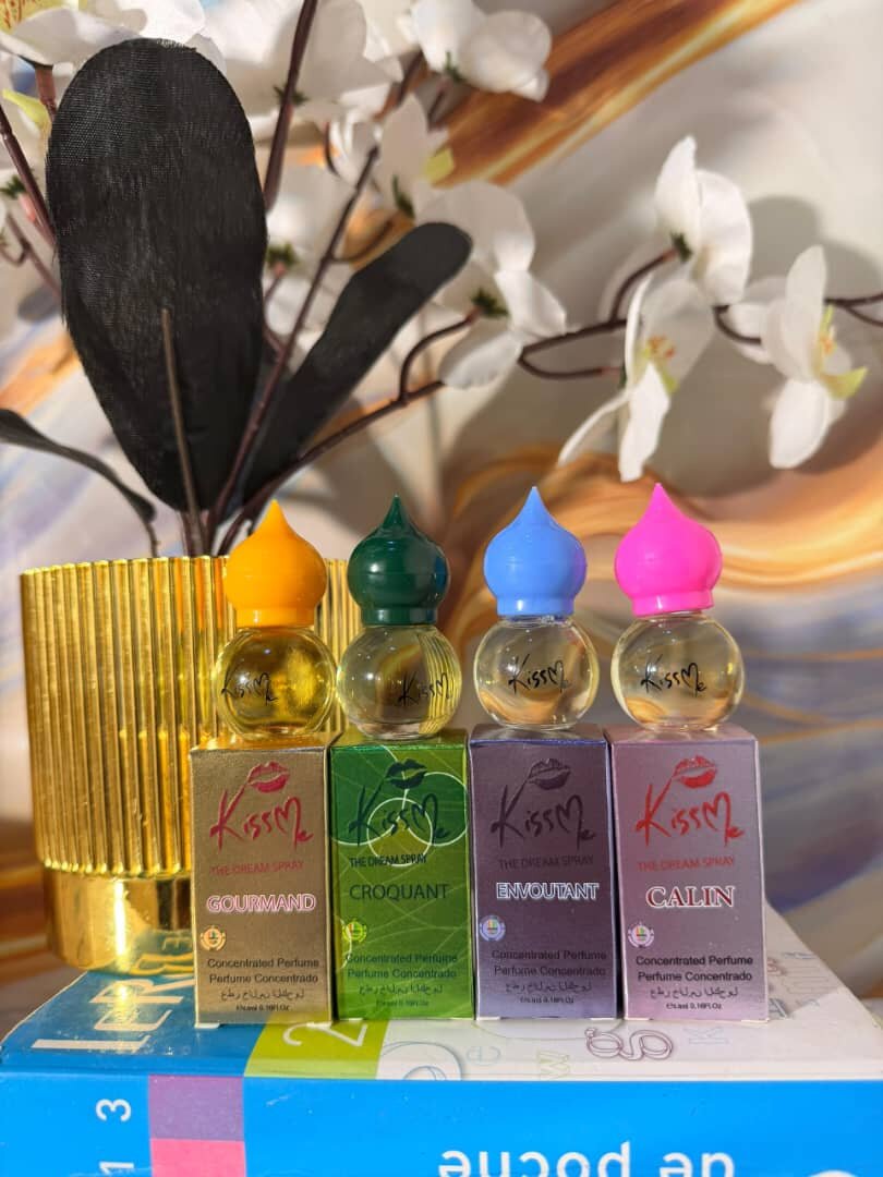 Découvrez les parfums concentrés Kiss Me, de petits flacons élégants au parfum intense et agréable.