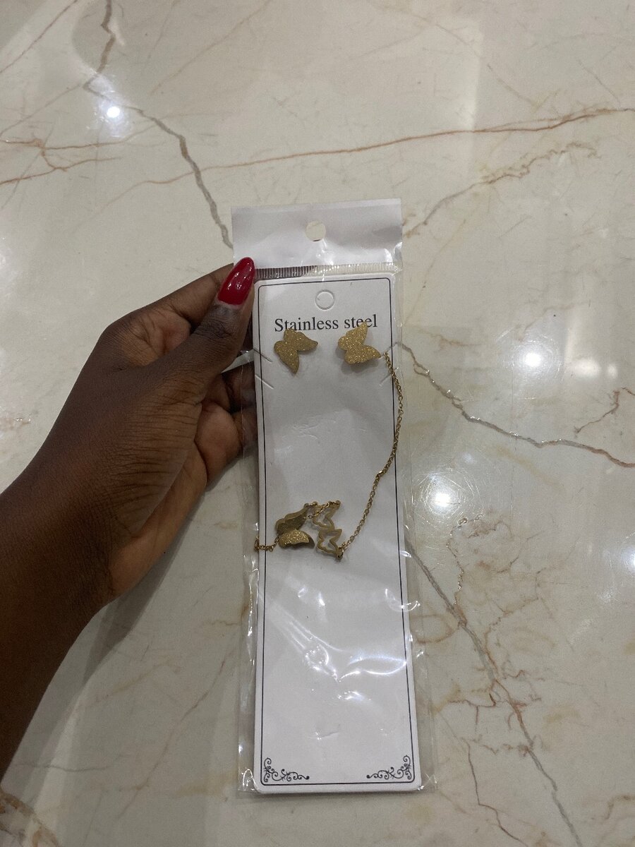 Cette magnifique parure en acier inoxydable comprend des boucles d'oreilles et un collier en forme de papillon, idéale pour sublimer votre tenue quotidienne. Élégant et résistant, cet ensemble est parfait pour toutes occasions.