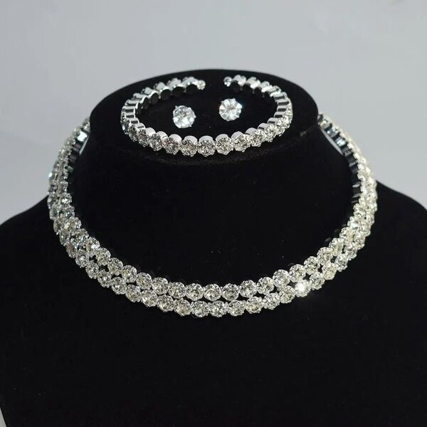 Éclatante parure en cristal, parfaite pour soirées et événements spéciaux. Comprend un collier, bracelet et boucles d'oreilles assortis. Accentue votre tenue avec une touche de glamour et de raffinement. Idéale pour mariages ou occasions festives.