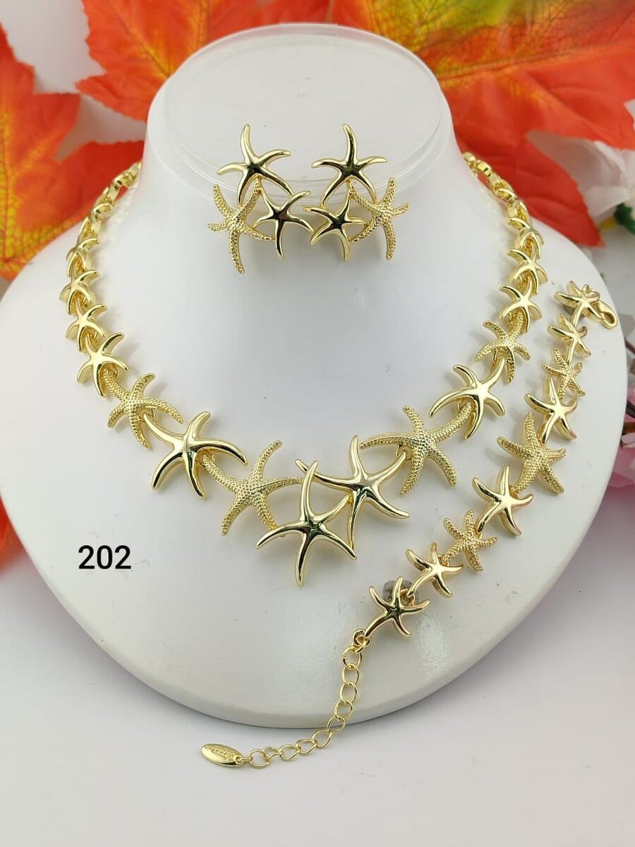 Découvrez notre parure de bijoux élégante pour femmes, composée d'un collier et de boucles d'oreilles assorties en or. Parfaite pour ajouter une touche de sophistication à vos tenues. Idéale pour les occasions spéciales ou les soirées. Ne manquez pas d'impressionner avec ce design raffiné et intemporel.