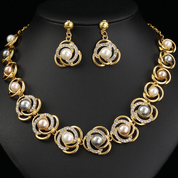 Élégante parure de bijoux ornée de perles et cristaux, idéale pour soirées. Ajoute une touche sophistiquée à votre tenue. Parfait pour occasions spéciales.