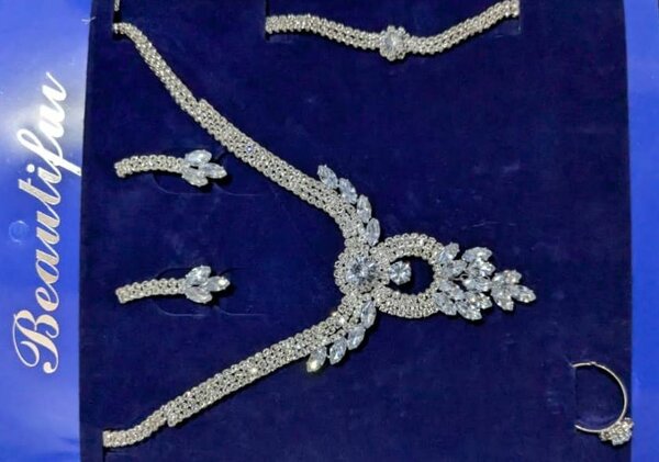 Élégant ensemble de collier et boucles d'oreilles en diamant, parfait pour les occasions spéciales. Conception luxueuse et raffinée, idéale pour les femmes qui aiment le luxe.