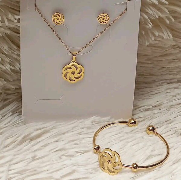 Éblouissante parure en plaqué or avec collier et boucles d'oreilles assortis, parfaite pour sublimer votre tenue de soirée. Conception élégante et raffinée pour une allure chic et glamour.